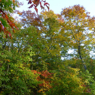 雨上がり後ということで道はドロドロにぬかるみ、木道はツルツルで気の抜けない道が連続しています。道は急登と平坦な道のミックスで、樹林帯が暫く続いていました。すると、途中で何か動物の鳴き声が…。鹿でないことは確かです。Nちゃんが、「熊!?」と言いました。そうかな…。と思いつつまた歩き始めますが、時を空けずしてまたも声が。吠えるような鳴き声です。これは、やっぱり「熊」に違いない。その後も数回鳴き声が聞こえてきたので多少ビビりますが、熊鈴もつけているし、Nちゃんも一緒なので気を取り直して先へと進みました。